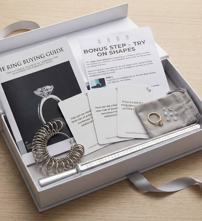 Not sure about the size or style? Propose with a resin replica ring, a card game to discover her perfect ring and a design consultation voucher. Take the stress out of the surprise and design the dream ring together.